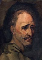 Portret van Alonso Quijano die zijn verstand kwijtgeraakt. Zichzelf het imago van een dolende ridder aangemeten hebbend verlaat hij onder de naam Don Quichot van La Mancha (naar zijn geboortestreek) zijn huis en begint een dwaaltocht over de wegen en het platteland van Spanje. Gezeten op zijn strijdros Rocinant, in feite een oude, uitgemergelde boerenknol die hij ophemelt tot raspaard, en gehuld in een oud verroest harnas en een papieren helm, trekt hij ten strijde tegen alle soorten van onrecht en onrechtvaardigheid. Door het stellen van goede daden hoopt hij beroemd te worden en zo in de gunst te komen van zijn grote liefde, de wonderschone Dulcinea. De queeste naar deze hoofse en begeerlijke prinses (die zijn idealisering is van Aldonza Lorenzo, een eenvoudige boerendochter uit het naburige dorp El Toboso die hij nog nooit heeft gezien en die vermoedelijk zelfs niet eens bestaat) is een parodie op het genre van de amour lointain.