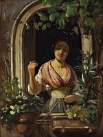 Wilhelm Marstrand-Italiaanse vrouw zwaaiend vanuit een raam