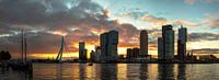 Koop de Skyline van Rotterdam foto Wilhelminapier met een silhouet achtige zonsopkomst te Rotterdam van Anton de Zeeuw op canvas, aluminium dibond, (ingelijste) fotoprint, behang en ArtFrame, op maat geprint in Fine-Art kwaliteit.