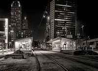 Werkzaamheden aan het Wilhelminaplein geven de foto het gevoel van een stad in aanbouw. Recht het KPN-gebouw en links het Luxor Theater, New Orleans en Montevideo torens. Wilhelminaplein
