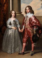 Hij is veertien, zij pas negen. Toen de Hollandse prins en de Engelse prinses zo jong in Londen trouwden, werd dit portret gemaakt van de kinderen. Frederik Hendrik, de vader van Willem, gaf de beroemde Vlaamse schilder Van Dyck de opdracht voor het portret. Het huwelijk met de Engelse koningsdochter was goed voor de status van de Oranjes. Op haar jurk draagt Maria het cadeau van Willem: een grote diamanten broche.