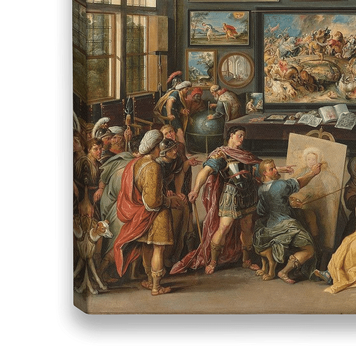 Koop Willem van Haecht, Apelles schildert Campaspe als reproductie op canvas, aluminium dibond, (ingelijste) fotoprint, behang en ArtFrame, op maat geprint in Fine-Art kwaliteit.