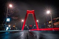 Lichtsporen op de Willemsbrug in Rotterdam. Skyline van Rotterdam in Nederland.