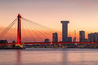 De Willemsbrug en de in aanbouw zijnde Zalmhaventoren tijdens zonsondergang.