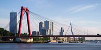 Willemsbrug en Erasmusbrug met spiegelglad water. Deze foto is gemaakt met een grijsfilter waardoor een lange sluitertijd ontstaat.