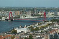 De bekende Willemsbrug in Rotterdam, gezien vanaf een hoog standpunt. Mooi te zien hoe de elegante Willemsbrug Rotterdam Noord en Zuid met elkaar verbindt over de Nieuwe Maas