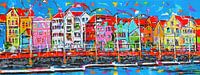 Willemstad Curaçao van de kunstenaars van Vrolijk Schilderij. Acrylverf op Canvas. Origineel 160 x 80