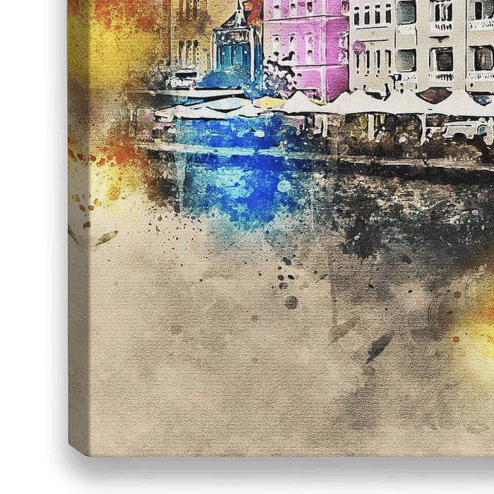 Bekend in Curaçao is natuurlijk de handelskade in Willemstad. Kleurrijke panden die typerend zijn in het Caribisch gebied. Versie zonder tekst, net zo mooi aan de muur!