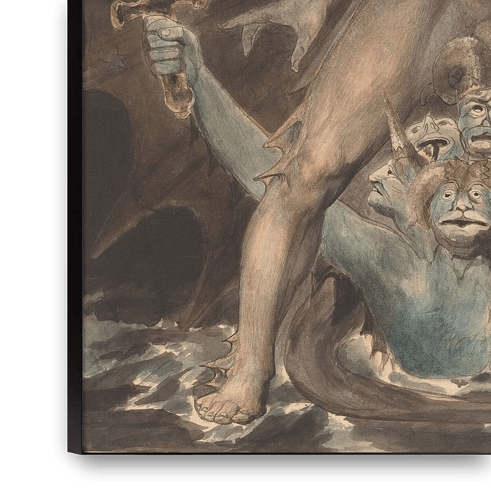 William Blake (1757–1827) was een Engelse dichter, schilder en graveur die wordt beschouwd als een van de meest originele kunstenaars van de Romantiek. Zijn werk is diep symbolisch, mystiek en visionair. Blake geloofde dat kunst en poëzie toegang boden tot hogere, spirituele werkelijkheden. Hij combineerde tekst en beeld op unieke wijze, vaak met zelfgegraveerde illustraties bij zijn gedichten, zoals in Songs of Innocence and of Experience. Zijn kunst toont engelen, profeten, hemelse en duistere krachten, vaak geïnspireerd door Bijbelse en mythologische thema’s. Hoewel hij tijdens zijn leven weinig erkenning kreeg, wordt hij nu gezien als een pionier van de moderne kunst en een profeet van de verbeelding. Blake’s werk is tijdloos: het raakt aan thema’s als goed en kwaad, verlossing, droom en werkelijkheid. Zijn invloed reikt tot in de hedendaagse literatuur, muziek en beeldende kunst. Blake was een visionair kunstenaar die zijn eigen spirituele universum schiep.