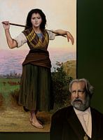 Realistisch portret in acryl van de Franse kunstschilder William Bouguereau met zijn zijn schilderij Het Kleine Herderinnetje, geschilderd door de kunstenaar Paul Meijering - het originele schilderij is 120 x 90 cm en beschikbaar voor de verkoop.