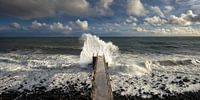 De smalle pier strekt zich uit in de Atlantische Oceaan als een tastende gedachte, vastberaden en kwetsbaar tegelijk. Daaronder kolkt de zee, donker en zwaar, opgezweept door een storm die geen vragen stelt. Golven stapelen zich op, rollen naar binnen en botsen met donderend geweld tegen het uiteinde van de brug, alsof ze voortdurend…