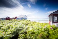 Typisches Badehäuschen auf der dänischen Insel Aerö. Die Insel Aerö gilt als Perle der dänischen Südsee, einem Inselmeer südlich der Insel Fünen.