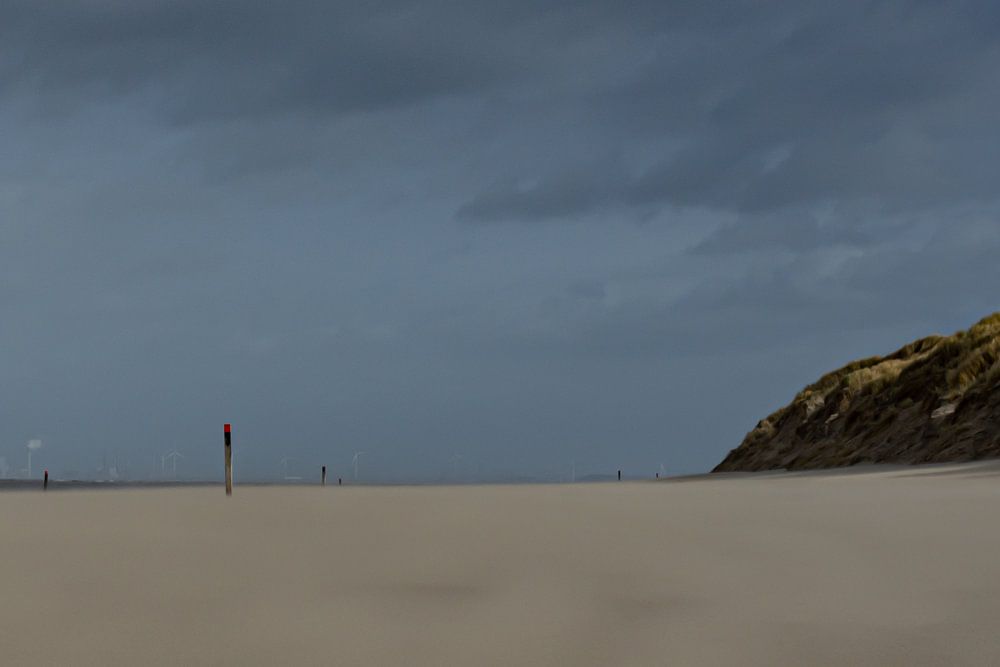 Foto is gemaakt op een stormachtige dag in Zeeland. De bovenste droge zandlaag wordt door de wind voortgeblazen.