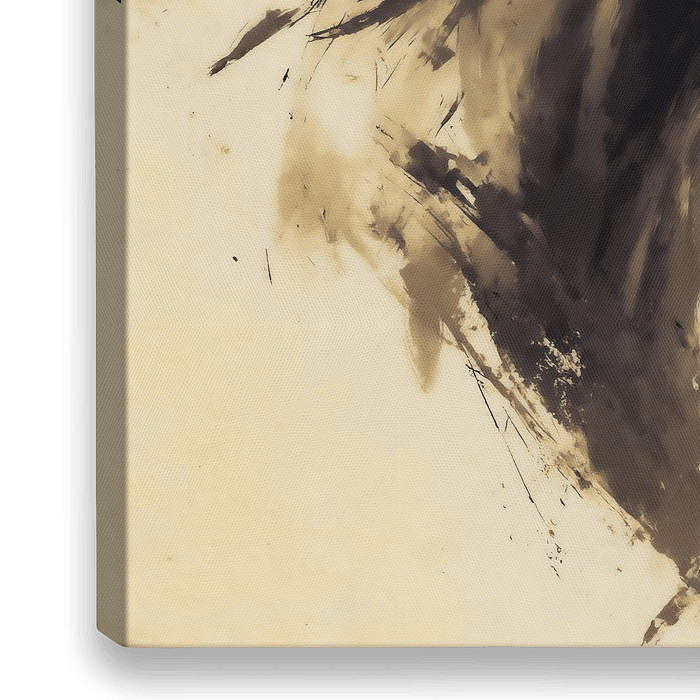 Het geglazuurde aquarelkarakter wordt gecombineerd met gedurfde inktspatten. Gereduceerde sepia- en ivoortinten creëren een tijdloze vintage charme, terwijl expressieve, bijna schetsmatige lijnen bewegingsenergie suggereren. De open compositie - de borst en…