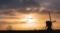 silhouette van een windmolen in kinderdijk, met een mooie gekleurde lucht op de achtergrond.