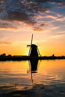 Reflectie van een molen in de buurt van Alphen aan den Rijn tijdens zonsondergang.