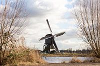 Deze windmolen, in Kinderdijk, geeft precies weer hoe het hier in Nederland het mooist is. Met een wolk in de lucht en de wind in het water!