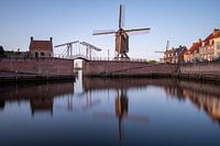 Weerspiegeling van een windmolen in het water van de haven van Heusden.