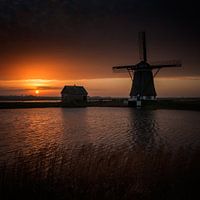 Windmolen op Texel gefotografeerd met zonsondergang