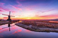 Koop dit landschapskunstwerk Windmolen bij zonsopkomst van Maikel Brands op canvas, aluminium dibond, (ingelijste) fotoprint, behang en ArtFrame, op maat geprint in Fine-Art kwaliteit.