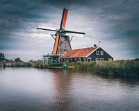 Windmolen op de Zaanse Schans in de Zaanstreek , even ten noorden van Amsterdam. De typisch Nederlandse windmolens zijn een attractie voor de vele toeristen.