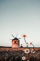 Stenen windmolen bij het Balatonmeer in het midden van de Vlucht