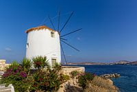 Deze oude stenen windmolen staat aan de kust van het Griekse eiland Paros. De typische kenmerken van de Griekse windmolen zijn te zien, nl. de ronde vorm, het puntdak en de kleine raampjes. Ooit waren ze belangerijk voor de lokale economie om graan te malen. Tegenwoordig zijn het vooral toeristische attracties.