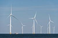 Windmolenpark in het water voor de kust van de Noordoostpolder nabij Urk in Nederland