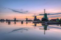 Ochtendsfeer in de Zaanse Schans, een woon- en ambachtswijk uit 1850, waar ambachtslieden nog steeds hun dagelijkse werk op de traditionele manier doen. Het kleine dorp ligt bij Zaandijk, ongeveer 20 km ten noorden van Amsterdam.