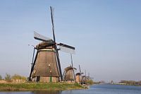 Windmolens met water in avondlicht, Unesco werelderfgoed, Kinderdijk, Nederland