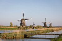 Windmolens met water  in avondlicht, Kinderdijk van Ger Beekes