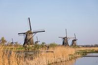 Koop dit landschapskunstwerk Windmolens met water in avondlicht, Kinderdijk van Ger Beekes op canvas, aluminium dibond, (ingelijste) fotoprint, behang en ArtFrame, op maat geprint in Fine-Art kwaliteit.