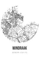 Zwart-witte landkaart, stratenplan of plattegrond van Windraak. Windraak is gelegen in de gemeente Sittard-Geleen, provincie Limburg. Op de stadskaart zijn alle openbare wegen in Windraak opgenomen. Verder is de kaart voorzien van de coördinaten van het centrum van Windraak.