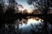 De vijver is het Gorsebos in Purmerend ligt er strak bij op deze windstille lenteavond. De zon is net onder, er is geen zuchtje wind, de omringende bomen en de avondlucht spiegelen in het spiegelgladde water, en de enige rimpelingen die er zijn worden gemaakt door zwemmende vogels in de verte. Verder gebeurt er niets op deze prachtige lente-avond. Het licht van de ondergaande avondzon maakt silhouetten van de bomen in de omgeving. Purmerend is een zeer waterrijke gemeente waar we zuinig op moeten zijn.