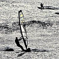 Windsurfer monochroom gemengde techniek van Werner Lehmann