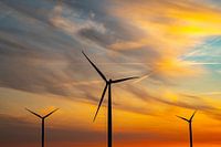 Windturbines in de Noordoostpolder in Flevoland, Nederland, in de lente.