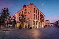 Het blauwe uur met straatverlichting in de Zuid-Limburgse plaats Valkenburg aan de Geul (Nederland).