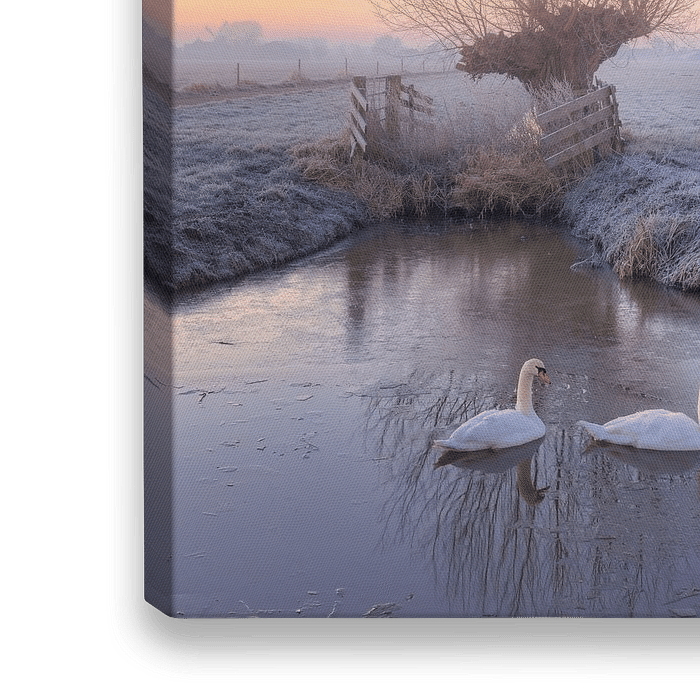 Koop dit landschapskunstwerk Winter Light - twee zwanen op een koude winter ochtend van Bas Meelker op canvas, aluminium dibond, (ingelijste) fotoprint, behang en ArtFrame, op maat geprint in Fine-Art kwaliteit.