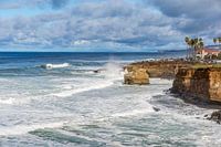 Fine art kustfoto door Joseph S. Giacalone. Grote winterse branding bij Sunset Cliffs Natural Park in San Diego, Californië, VS.