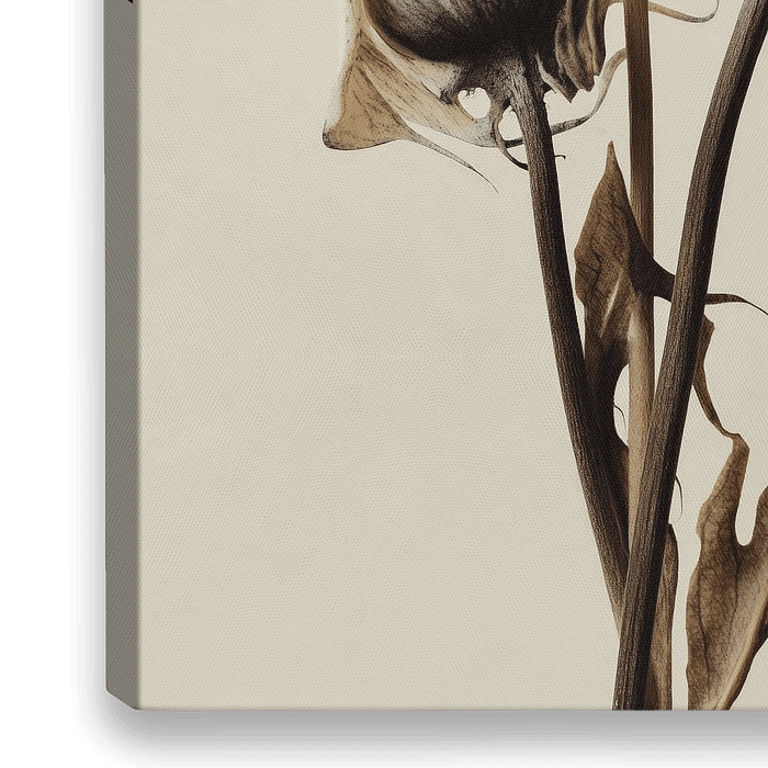 Een minimalistisch botanisch kunstwerk met delicate, papaverachtige zaaddozen in zachte ivoor- en houtskooltinten, met fijne, inktachtige texturen en een luchtige, contemplatieve sfeer.