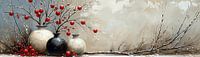 Winter Stilleven Rood - Winterstilleven met rode bessen en elegante vazen.