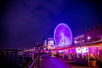 Het Wheel of Vision in Düsseldorf verlichtte de lucht met prachtige blauwe kleuren tijdens de mooie kerstperiode.