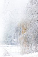 winter prik aan het boothuis in het park, de heftige sneeuwval gaf op korte tijd dit prachtige winters landschap. wat herfstkleurtjes van de treurwilg gaf een extra meerwaarde aan dit winter tafereel.