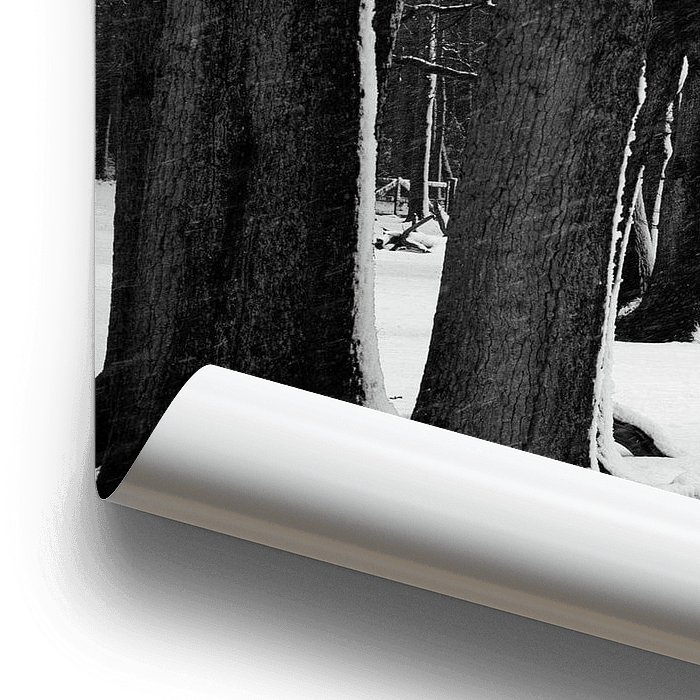 Een vredig winter bos vastgelegd in zwart-wit. Sneeuw accentueert de structuur van de bomen en creëert een kalme en evenwichtige compositie. Deze foto voegt een gevoel van stilte en elegantie toe aan moderne interieurs, kantoren en minimalistische woonruimtes. Een tijdloos stuk natuur geïnspireerde wandkunst.