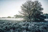 De eerste kou die de heide in Garderen (Nederland) bevriest en een koude nevel achterlaat.