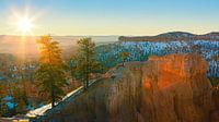 Een horizontale 16:9-foto van een zonsopkomst in de winter in Bryce Canyon National Park in Utah, een nationaal park gelegen in het zuidwesten van de Verenigde Staten.