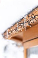 Winter ijspegels met feeënlichtjes in de sneeuw