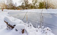 Winterbeeld met sneeuw en ijs van het Arboretum Heempark Delft