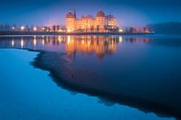 Kasteel in Moritzburg op een avond in de winter