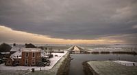 Prachtige kleuren in de lucht boven huiskamercafé 't Zielhoes in Noordpolderzijl. Noordpolderzijl heeft de kleinste zeehaven van Nederland en is gelegen aan de Waddenzee. Het is een graag bezochte locatie voor toeristen en locale recreanten.